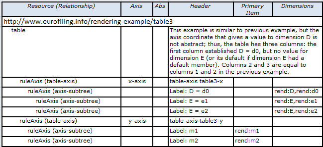 Though formatting artefacts are not part of the table linkbase, tables are intended to be the foundation of the rendering specification. Tables identify the data to be rendered, its order and some basic graphical arrangement. This specification will be complemented by the rendering specification to allow the possibility of specifying accurately the way an instance document ought to be rendered and the way its content should be formatted.
