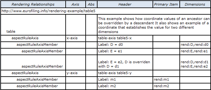 This overview provides examples and explanations as an introduction to the syntax and semantics of the table linkbase. The accompanying specifications provide the feature descriptions in a rigorous manner for implementation and validation.