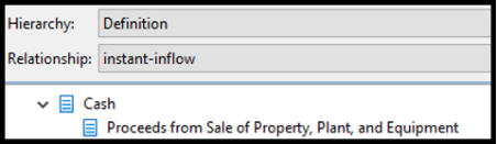 “Proceeds from Sale of Property, Plant, and Equipment” (ProceedsFromSaleOfPropertyPlantAndEquipment) is the target element of “Cash” (Cash), as it represents the inflow to cash from the sale of property, plant and equipment.