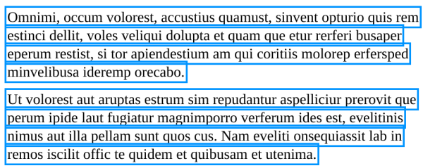 Figure 1: Highlighting applied to <p> tagsPDF-to-HTML conversion software will often use a separate, absolutely positioned element for each line within the paragraph. If a viewer copes with this at all, it is likely to add a border or background color to each line individually, as shown below: