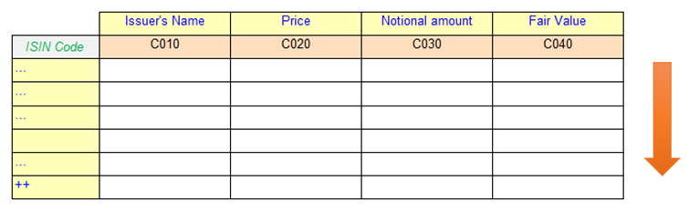 In the previous examples we were dealing with open aspects which were mandatory to be reported in the table. If we take an example of Figure 5, the data entry will not be complete unless the value for ISIN code (a typed dimension) is provided. In the rendering use case, the table will render only facts qualified by the typed dimension - ISIN code.